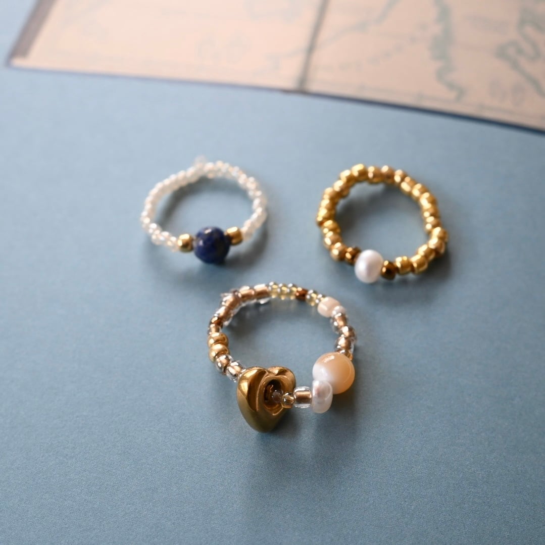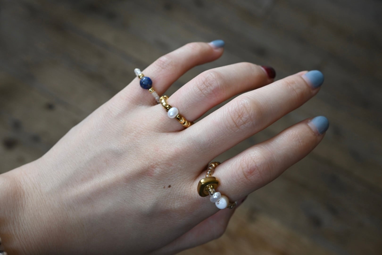 淡水パールの柔らかさとゴールドの輝きが、指先に華やかな余韻を与えます。