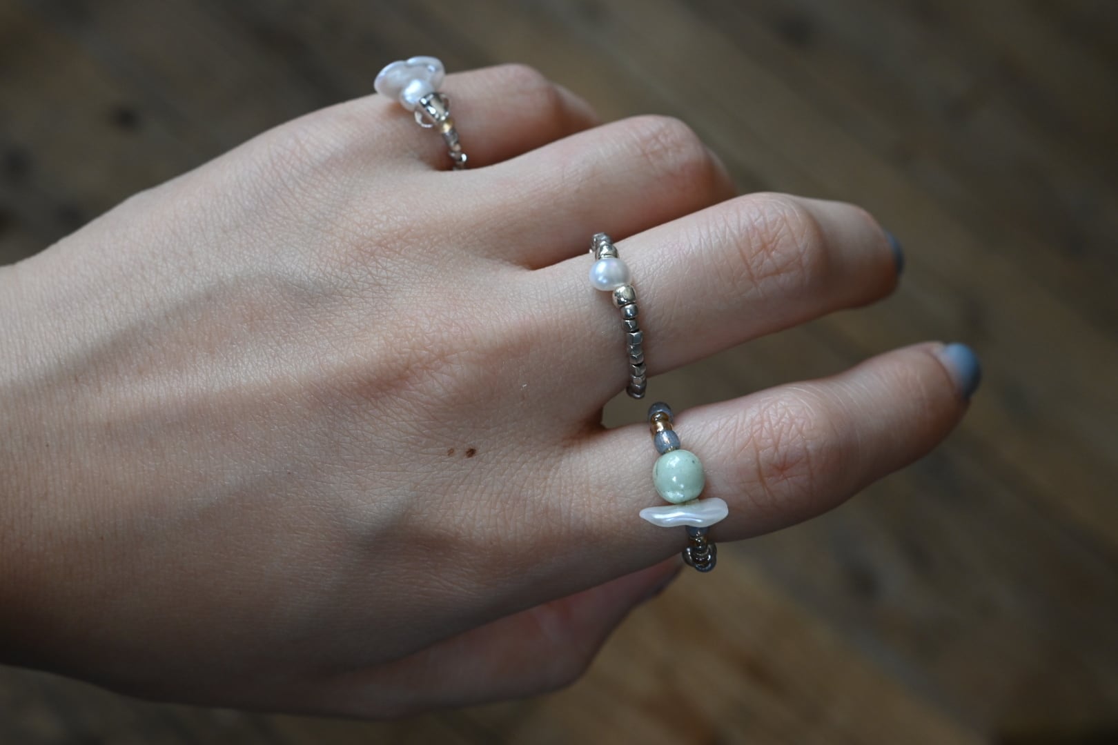 淡水パールを主役にしたシンプルでフェミニンな3点セット。